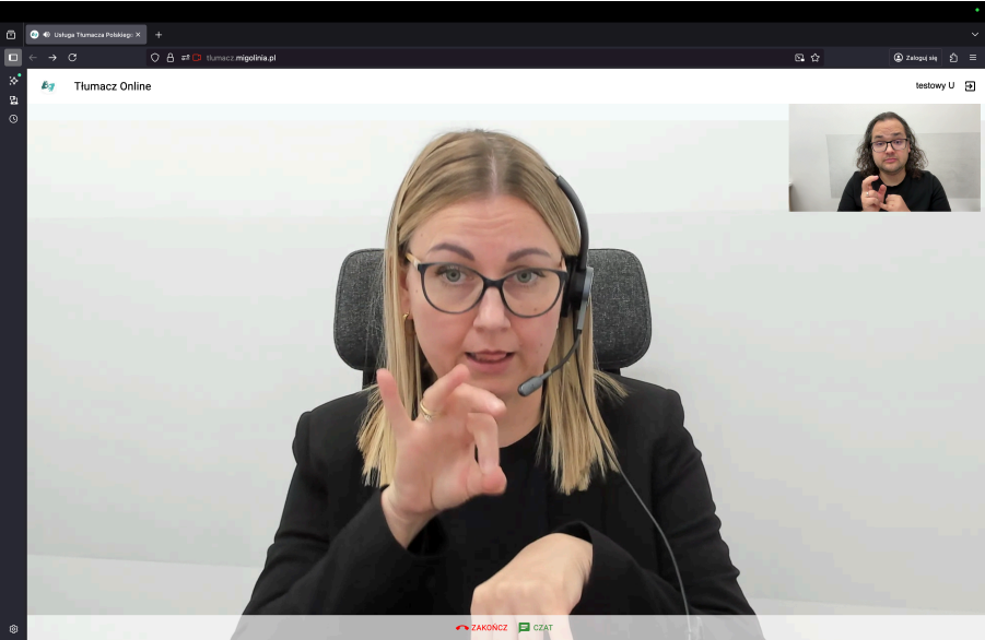 Wideotłumaczenie jest realizowane przez aplikację Polskiego Związku Głuchych – Oddziału Mazowieckiego.